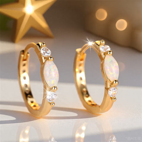 أقراط طارة مستديرة من حجر الماركيز الأبيض من العقيق للنساء ، إبزيم أذن ذهبي اللون عتيق ، مجوهرات زفاف ، هدايا عيد الأم