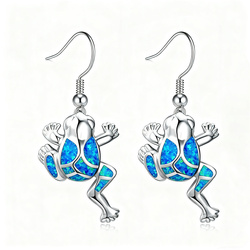 Cute Small Frog Animal Pendant Drop Earring Blue Fire Opal Stone Dangle Earrings for Women Vintage Silver Color Wedding Jewelry