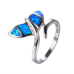 Dainty Female Blue Opal Stone Jewelry Charm Silver Color Thin Wedding Rings for Women Fashion Fish Tail Engagement Ring