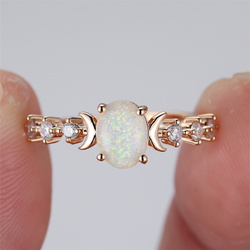 White Fire Opal Oval Stone Cute Moon Ring Vintage Fashion Gold Color Small Zircon Wedding Rings Engagement Jewelry for Women