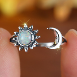 Cute Moon Sun Flower White Opal Round Stone Open Ring 925 Sterling Silver Rings for Women Trendy Wedding Band Fine Jewelry Gifts