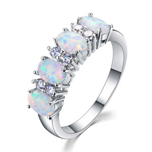 วินเทจหญิงสีเขียวสีขาวไฟโอปอลหินแหวนเสน่ห์สีเงินบางงานแต่งงานหมั้นเครื่องประดับสําหรับผู้หญิง