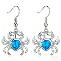 Sevimli yengeç kolye su damlası küpe mavi yangın Opal taş hayvan Dangle küpe kadınlar için Vintage gümüş renk düğün takısı