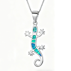 Mavi yangın Opal taş sevimli Gecko kolye hayvan kolye kadınlar için Vintage gümüş renk kutusu zincir kolye düğün takısı hediyeler
