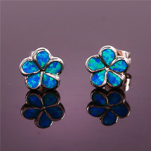 Mavi ateş Opal taş küpe kadın zarif çiçek saplama küpe basit moda gümüş renk nişan küpe kadınlar için parti