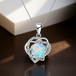 Hợp thời trang Hollow tình yêu trái tim Mặt dây chuyền Trắng Opal Vòng đá dây chuyền cho phụ nữ cổ điển Bạc Màu Dây chuyền vòng cổ trang sức cưới