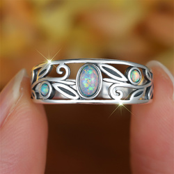 Cổ Điển Nữ Màu Xanh Lá Cây Trắng Lửa Đá Opal Nhẫn Quyến Rũ Bạc Màu Mỏng Cưới Engagement Trang Sức Cho Phụ Nữ