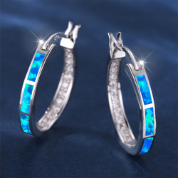 Màu Xanh opal trắng vòng Zircon 925 Sterling bạc Hoop Bông tai cho phụ nữ cổ điển thời trang cưới Birthstone Bông tai đồ trang sức mỹ