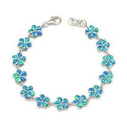 Hawaii Plumeria Hoa Vòng đeo tay sang trọng màu xanh lửa Opal Đá Vòng đeo tay cho phụ nữ cổ điển thời trang bạc màu mạ Boho đồ trang sức
