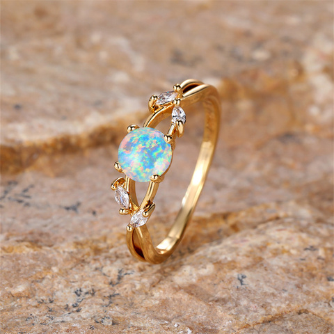 Trắng lửa Opal Vòng đá Vòng cổ điển Hollow Marquise pha lê Nhẫn đính hôn cho phụ nữ cổ vàng màu Phụ Kiện đám cưới
