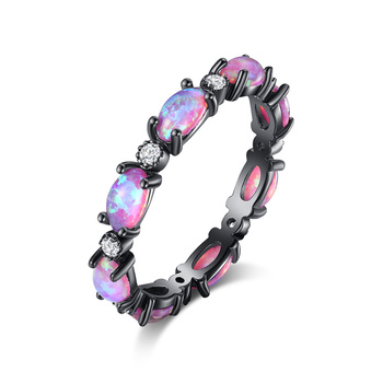 Màu Tím Lửa Opal Hình Bầu Dục Đá 925 Sterling Silver Nhẫn Cho Phụ Nữ Người Đàn Ông Màu Đen Kim Loại Ban Nhạc Đám Cưới Bridal Engagement Ring Đồ Trang Sức Mỹ