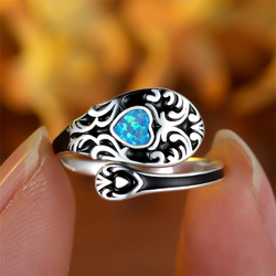 Tình yêu trái tim đá màu xanh lửa Opal Vòng 925 thật sterling bạc nhẫn cho phụ nữ Wedding Band Bridal engagement đồ trang sức mỹ Quà Tặng