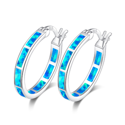 925 Sterling Silver Bạc Màu Xanh Lửa Opal Vòng Hoop Bông Tai Cho Phụ Nữ Cổ Điển Thời Trang Cưới Birthstone Bông Tai Đồ Trang Sức Mỹ
