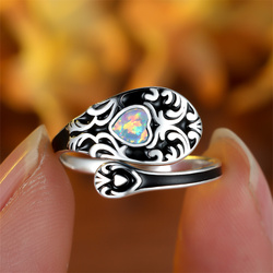 Hoa Cổ Điển Mô Hình Trắng Opal Tình Yêu Trái Tim Đá Mở Vòng 925 Sterling Silver Nhẫn Cho Phụ Nữ Đám Cưới Ban Nhạc Đồ Trang Sức Mỹ Quà Tặng