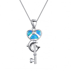 Sáng Tạo Trái Tim Key Với Cá Heo Mặt Dây Chuyền Màu Trắng Màu Xanh Lửa Opal Dây Chuyền Cho Phụ Nữ Người Đàn Ông Các Cặp Vợ Chồng Đồ Trang Sức Thời Trang Birthstone Vòng Cổ