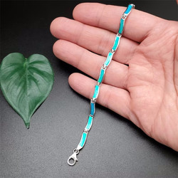 Đáng yêu màu xanh Opal Inlay liên kết vòng đeo tay dễ thương vuông nhỏ đá Chuỗi vòng đeo tay cho phụ nữ bạc màu mạ đồ trang sức thanh nhã Vòng đeo tay