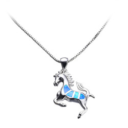 Màu Xanh Lửa Opal Đá Dễ Thương Ngựa Mặt Dây Chuyền Dây Chuyền Cho Phụ Nữ Cổ Điển Bạc Màu Hộp Chuỗi Động Vật Đồ Trang Sức